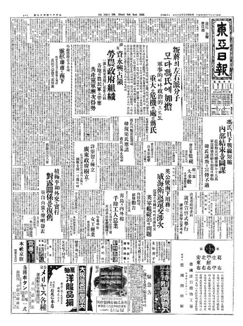 - 馮氏目下戰線短縮(빙씨목하전선단축) 內部結束(내부결속)을圖謀(도모)