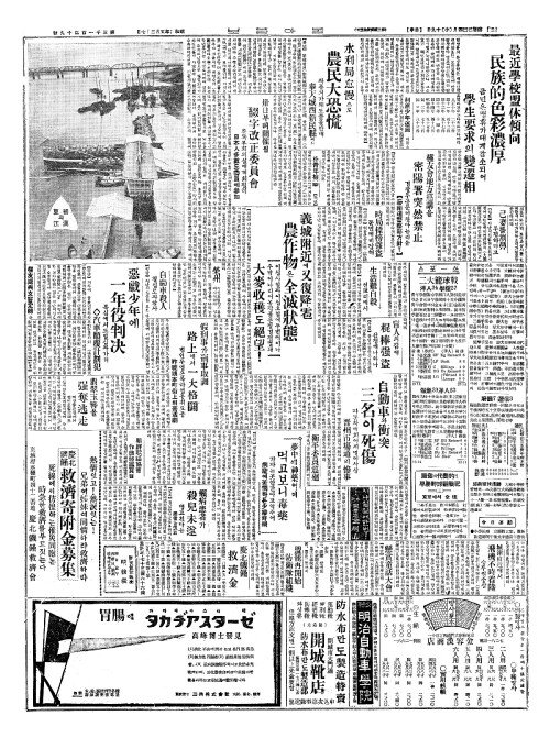 - 義城附近(의성부근)에又復降雹(우복강박) 農作物(농작물)은全滅狀態(전멸상태)