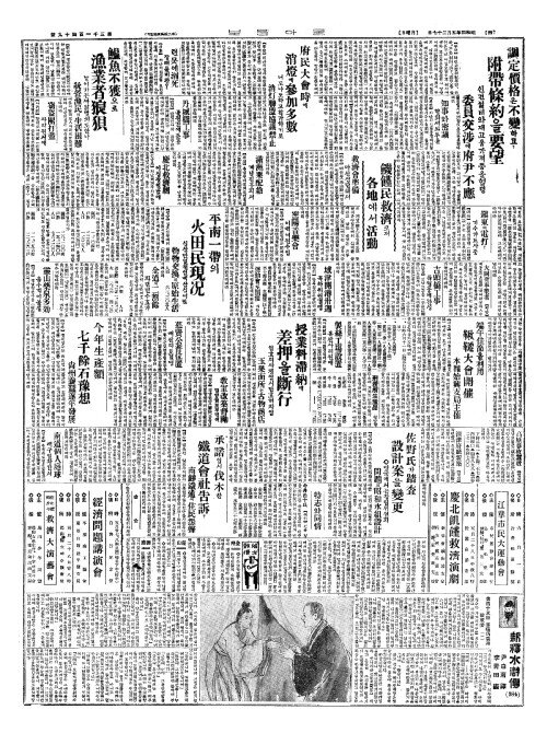 - 饑饉民救濟(기근민구제)코저 各地(각지)에서活動(활동)