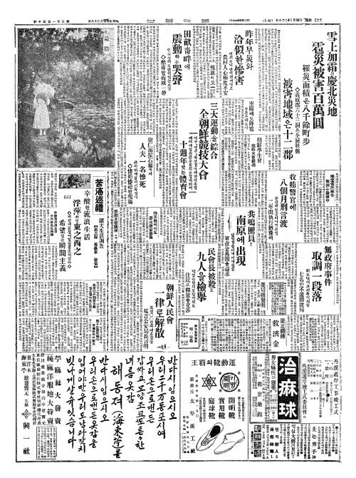 - 雪上加霜(설상가상)의慶北災地(경북재지) 雹災被害百萬圓(박재피해백만원)