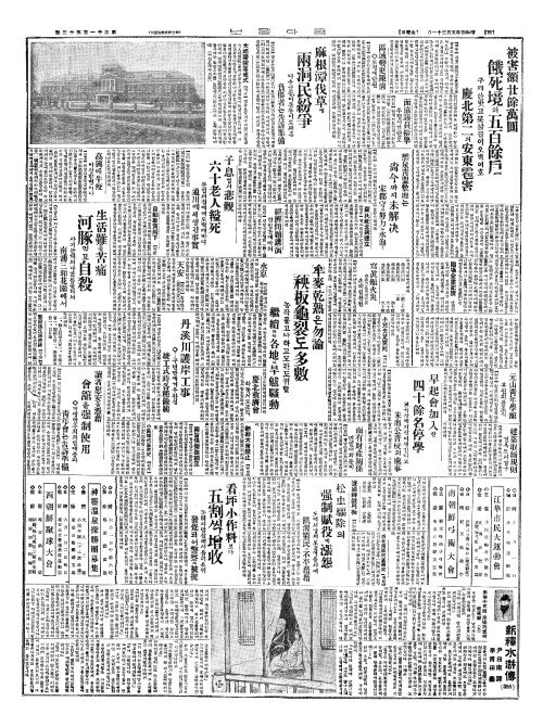 - 被害額廿餘萬圓(피해액입여만원) 餓死境(아사경)의五百餘戶(오백여호)