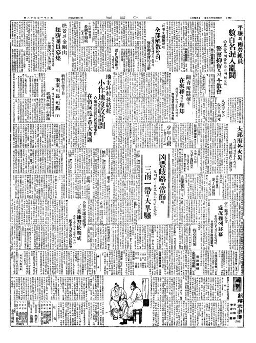 - 平壤(평양)의兩勞組員(량노조원) 數百名混入亂鬪(수백명혼입난투)