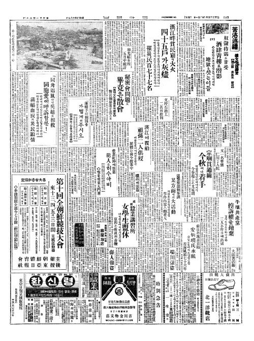 - 漢江畔貧民窟(한강반빈민굴)에大火(대화) 四十五戶(사십오호)가灰燼(회신)