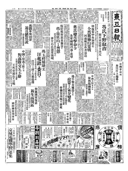 - 韓復渠中央加擔(한복거중앙가담)은 全然欺瞞的策戰(전연기만적책전) 河南戰雲再次急迫(하남전운재차급박)