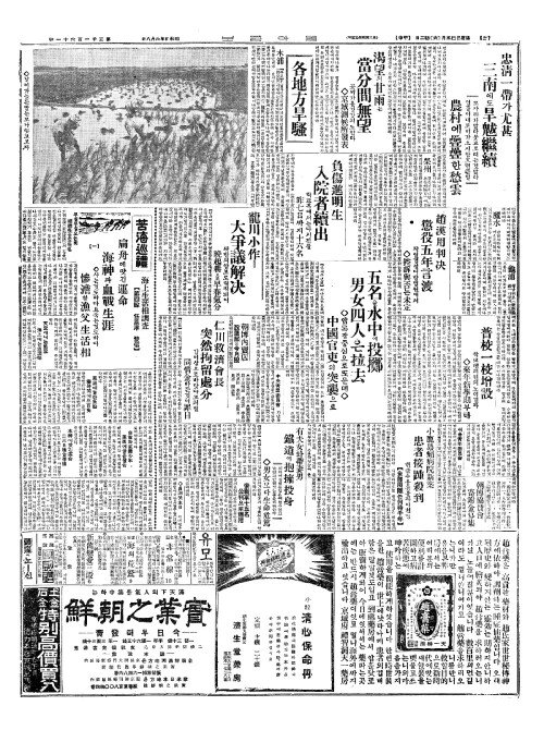 - 忠淸一帶(충청일대)가尤甚(우심) 三南(삼남)에도旱魃繼續(한발계속)