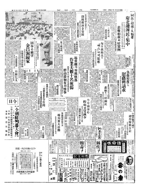 - 同族(동족)을超越(초월)한人類愛(인유애) 慶北饑饉民(경배기근민)에集中(집중)