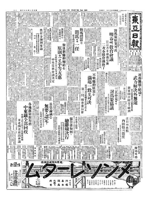- 排日運動取締(배일운동취체) 芳澤公使(방택공사)가 商震氏(상진씨)에게警吿(경고)