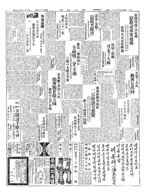 - 食水難(식수난)의釜山(부산)에大火(대화) 損害額廿餘万圓(손해액입여만원)