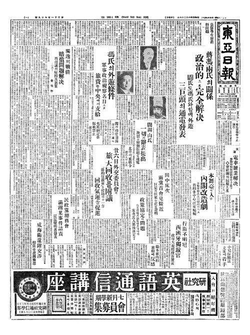 - 蔣馮兩氏(장빙양씨)의關係(관계) 政治的(정치적)으로完全解决(완전해결)
