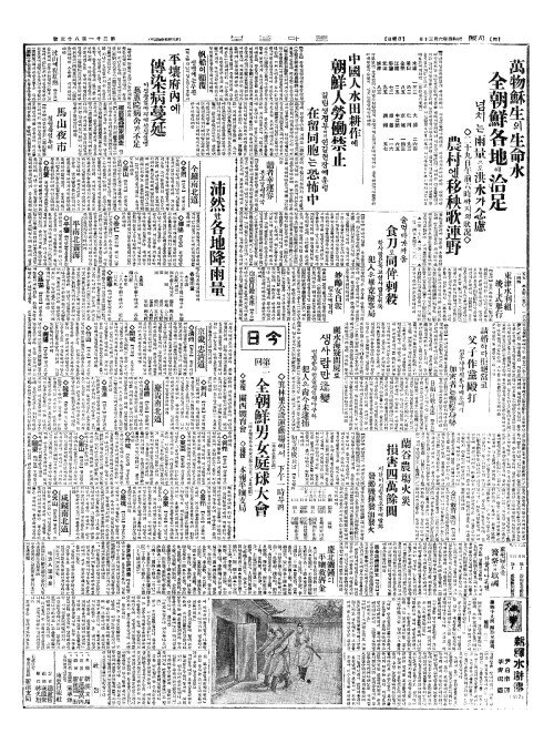- 慶南密陽(경남밀양)엔洪水亂(홍수난) 浸水家屋二百戶(침수가옥이백호)
