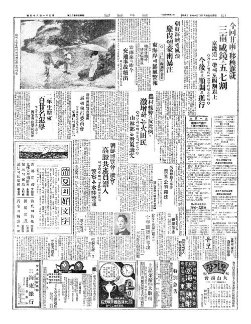 - 溺死者四名(닉사자사명) 浸水(침수)도百餘戶(백여호)