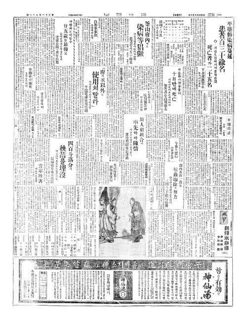 - 平壤傳染病蔓延(평양전염병만연) 患者百三十餘名(환자백삼십여명)