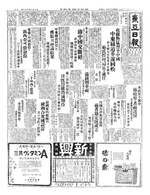 - 東三省外交移管(동삼성외교이관)으로 日旣得權消滅期待(일기득권소멸기대)
