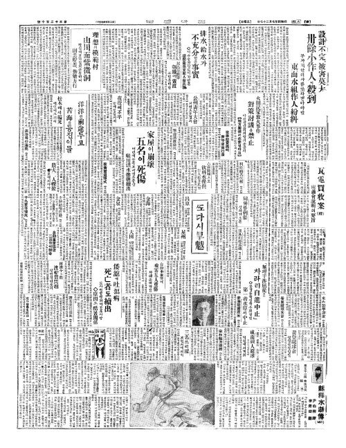 - 設計不完(설계부완)、被害莫大(피해막대) 卅餘小作人(삽여소작인)이殺到(살도)