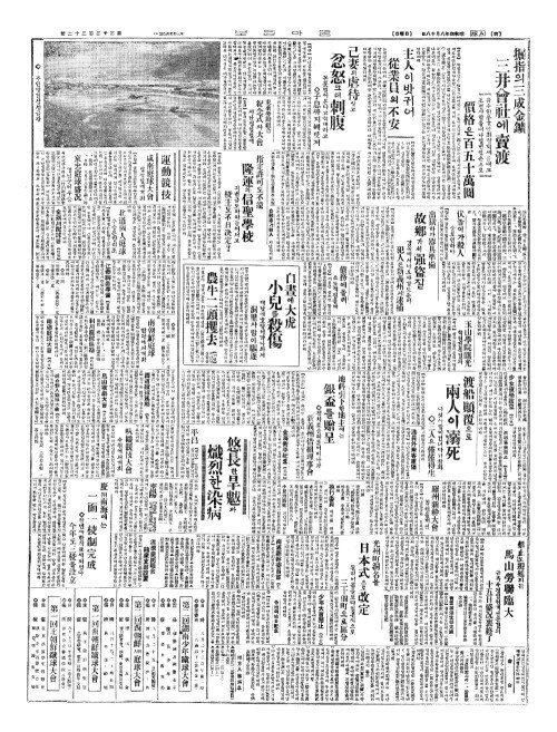 - 掘指(굴지)의三成金鑛(삼성김광) 三井會社(삼정회사)에賣渡(매도)