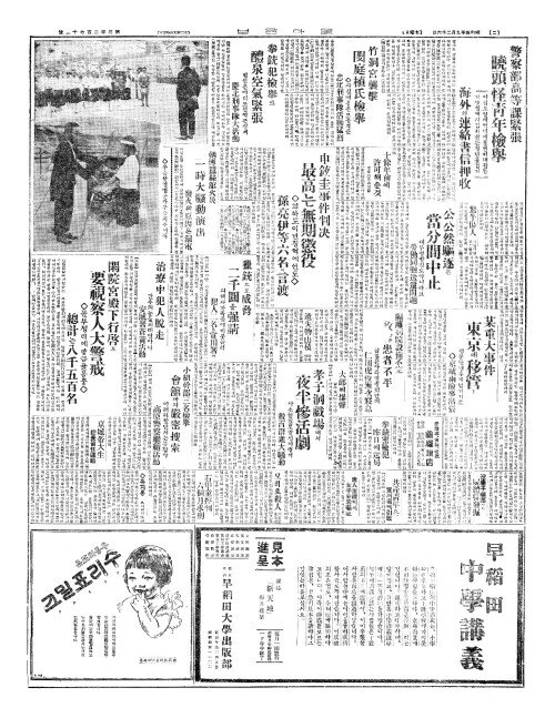 - 警察部高等課緊張(경찰부고등과긴장) 曉頭怪靑年檢擧(효두괴청연검거)