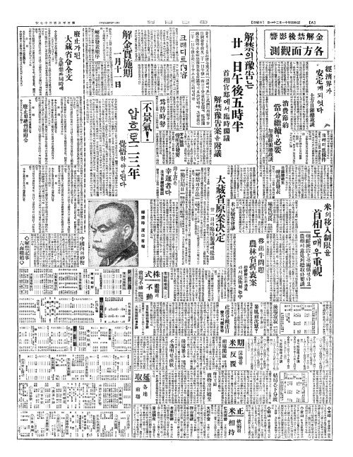 - 解禁(해금)의豫吿(예고)는 廿一日午後五時半(입일일오후오시반)