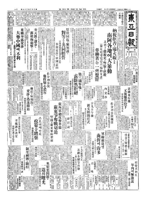 - 納稅拒否(납세거부)가導火線(도화선)으로 南阿各地(남아각지)에大暴動(대폭동)