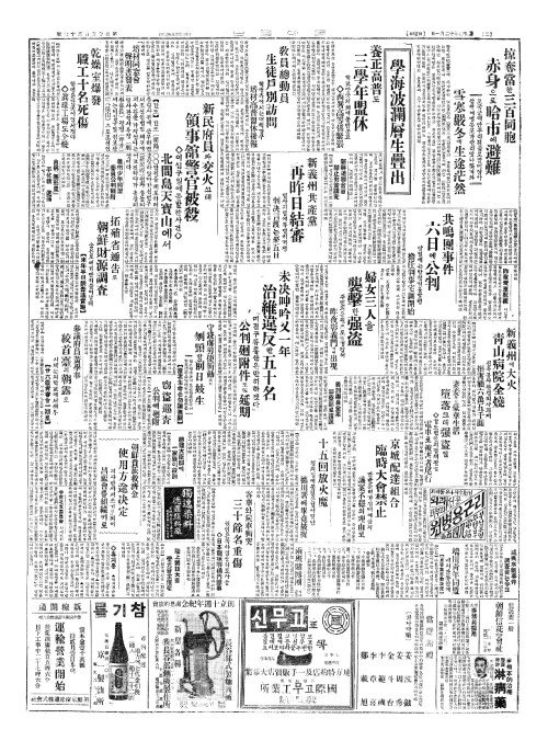 - 新義州(신의주)에大火(대화) 靑山病院全燒(청산병원전소)