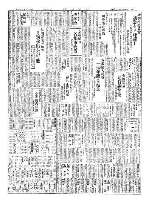 - 米調小委員會(미조소위원회) 議案(의안)을모다議了(의료)