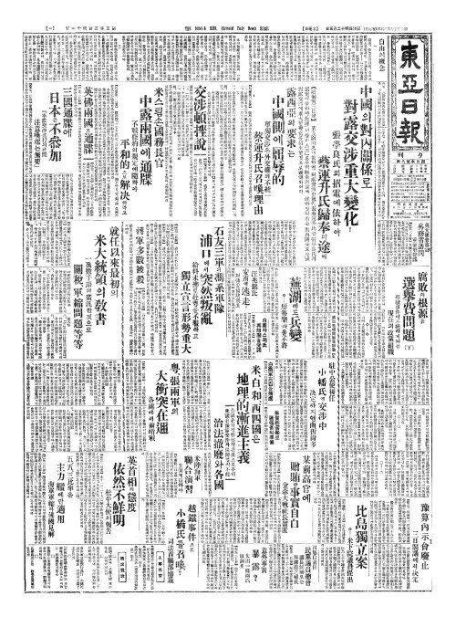 - 汪兆銘氏(왕조명씨) 安南(안남)에逃走(도주)? 對蔣妥協缺裂(대장타협결열)로