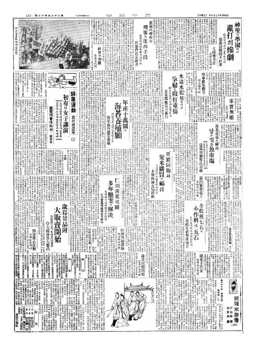 - 水道水濫用(수도수람용)햇다고 孕婦(잉부)를毆打重傷(구타중상)
