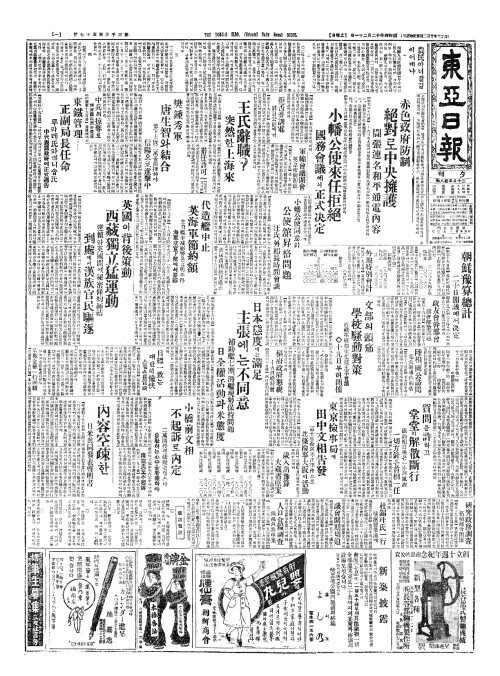 - 昨日辭令欄井關康時以下七氏(작일사령란정관강시이하칠씨)는『任總督府郡守(임총독부군수)(七等(칠등))(各通(각통))』이란것이漏落(누락)되엇기補訂(보정)함