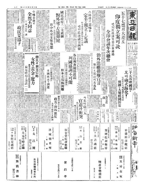 - 五十七票(오십칠표)의大差(대차)로 印度獨立案可决(인도독립안가결)