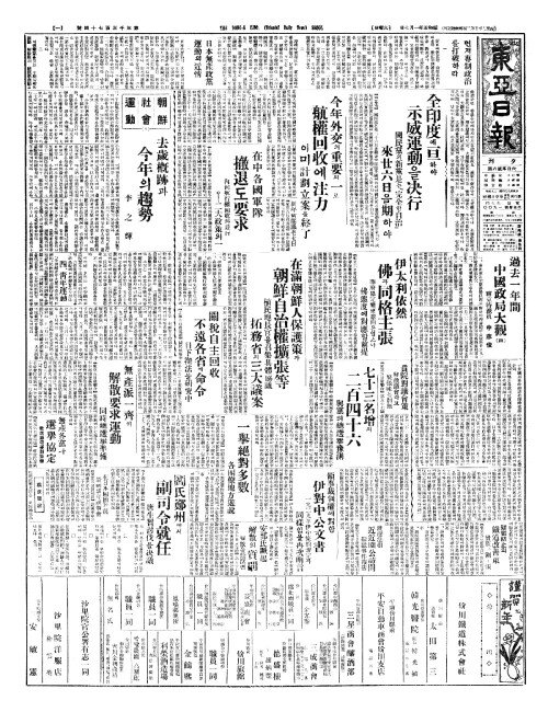 - 全印度(전인탁)에亘(긍)하야 示威運動(시위운동)을决行(결행)