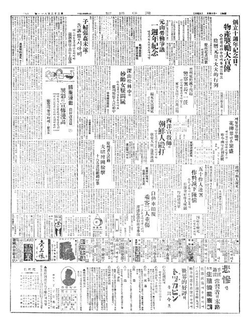 - 創立十週年紀念日(창입십주년기염일)에 物產奬勵大宣傳(물산장려대선전)