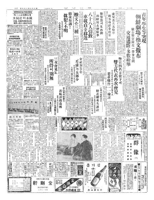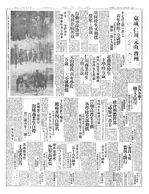 - 靑年(청연)、學生等突現(학생등돌현) 朝鮮劇塲(조선극장)에檄文撒布(격문살포)