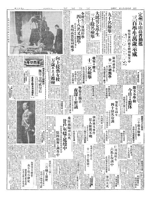 - 光州女子高普生(광주여자고보생) 十一名(십일명)은監獄(감옥)에