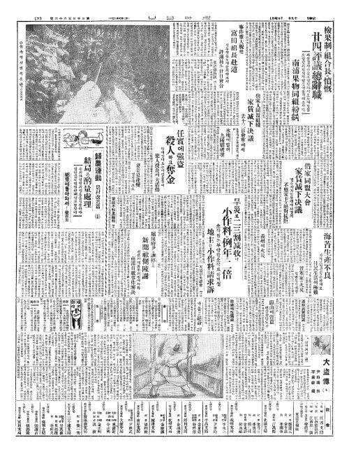 - 旱災(한재)로二三割减收(이삼할감수)나 小作料(소작요)는例年(예연)의二倍(이배)