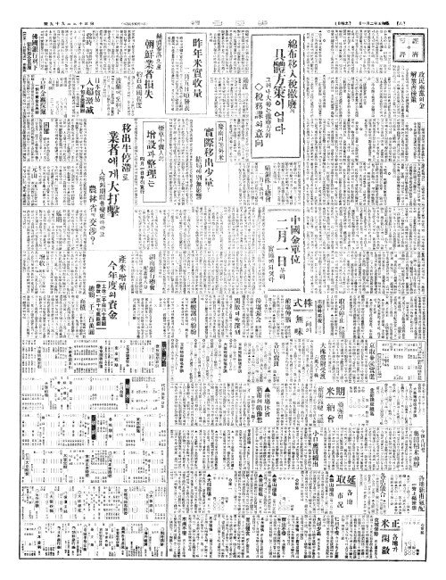 - 中國金單位(중국금단위) 二月一日(이월일일)부터 實施(실시)케되엿다