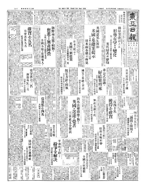 - 無產各派十氏(무산각파십씨) 日比谷(일비곡)에서政見發表(정현발표)