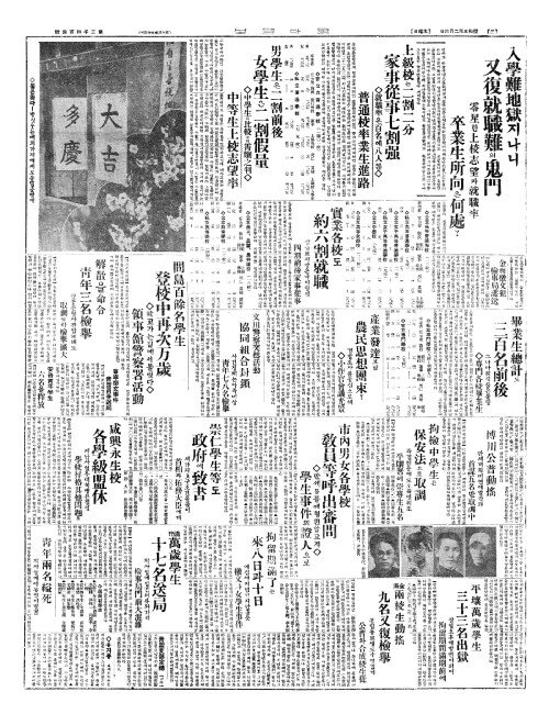 - 金海兩校生動搖(김해양교생동요) 九名又復檢擧(구명우복검거)