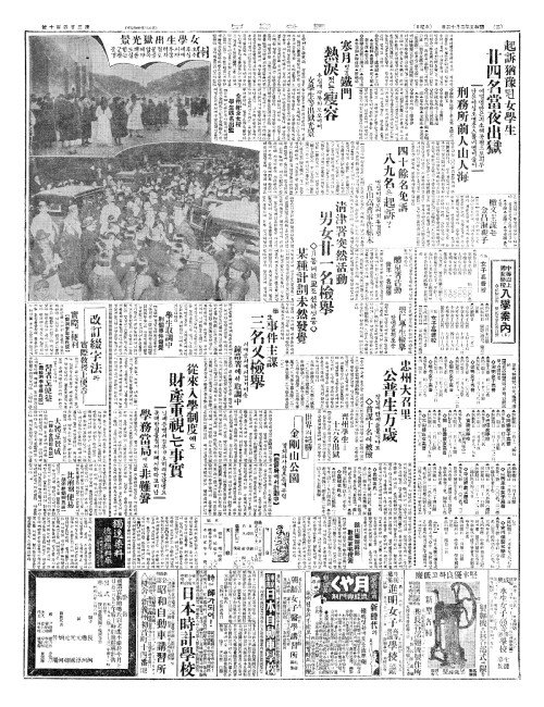 - 起訴猶豫(기소유예)된女學生(여학생) 廿四名當夜出獄(입사명당야출옥)