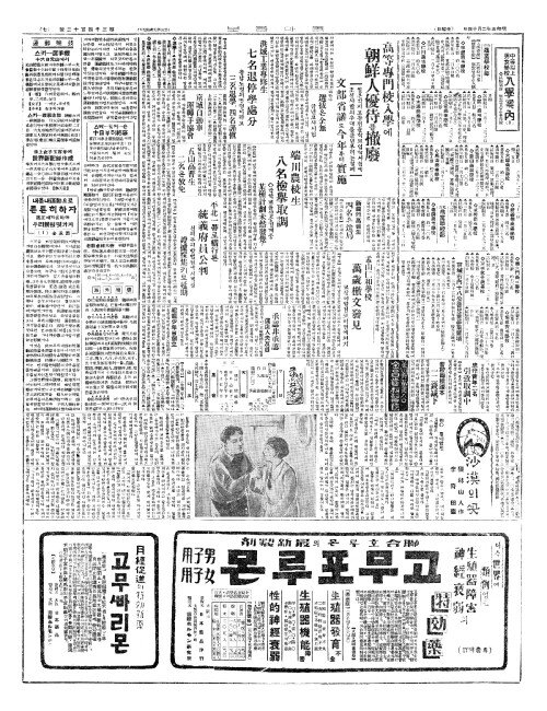 - 高等專門校入學(고등전문교입학)에 朝鮮人優待(조선인우대)를撤廢(철폐)