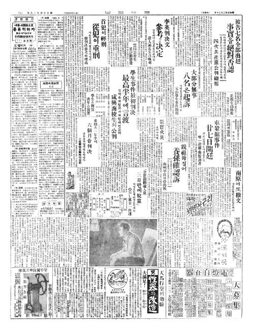 - 被吿七名全部出廷(피고칠명전부출정) 事實(사실)을絕對否認(절대부인)
