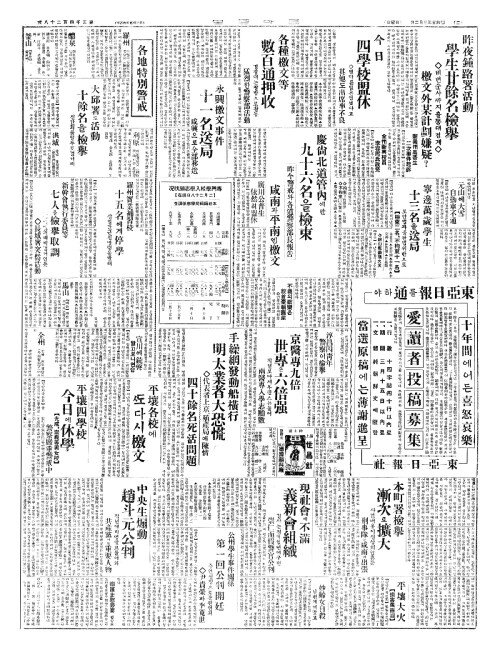 - 昨夜鍾路署活動(작야종노서활동) 學生廿餘名檢擧(학생입여명검거)