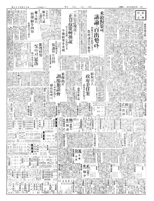 - 米糓對策(미곡대책)에 議論(의론)이百出(백출)한다