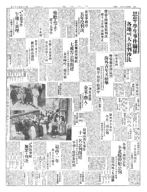 - 思想(사상)과學生事件關係(학생사건관계) 各地(각지)에大公判沙汰(대공판사태)
