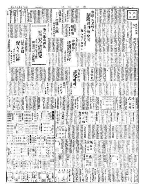 - 朝鮮(조선)의外米輸入(외미수입) 制限(제한)하랴는意向(의향)