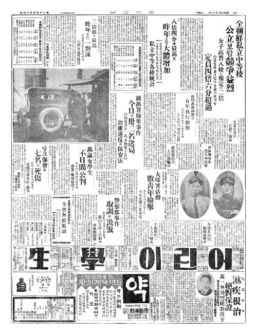 - 全朝鮮私立中等校(전조선사입중등교) 公立(공입)보담竸爭益烈(경쟁익열)