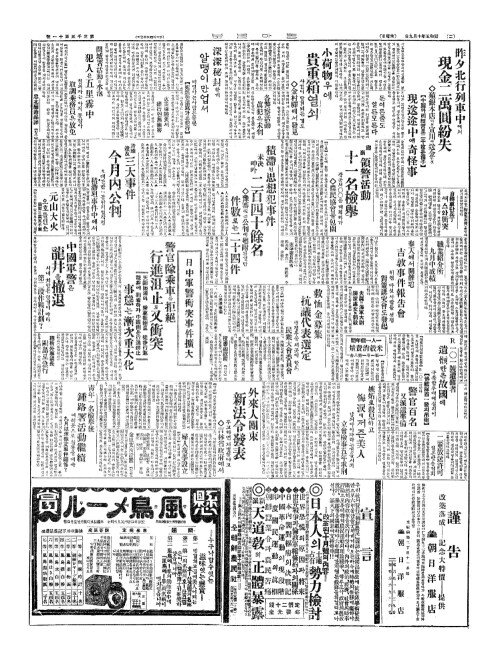 - 昨夕北行列車中(작석배행렬차중)에서 現金二萬圓紛失(현금이만원분실)