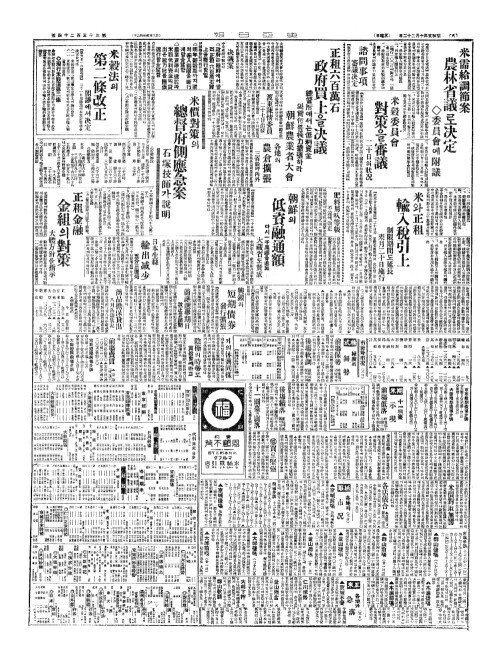 - 米需給調節案(미수급조절안) 農林省議(농임성의)로决定(결정)