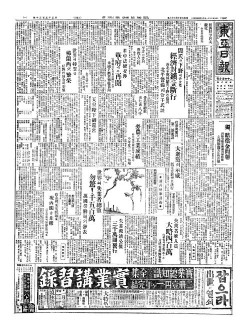 - 失業救濟公債(실업구제공채) 三千萬圓發行(삼천만원발행)