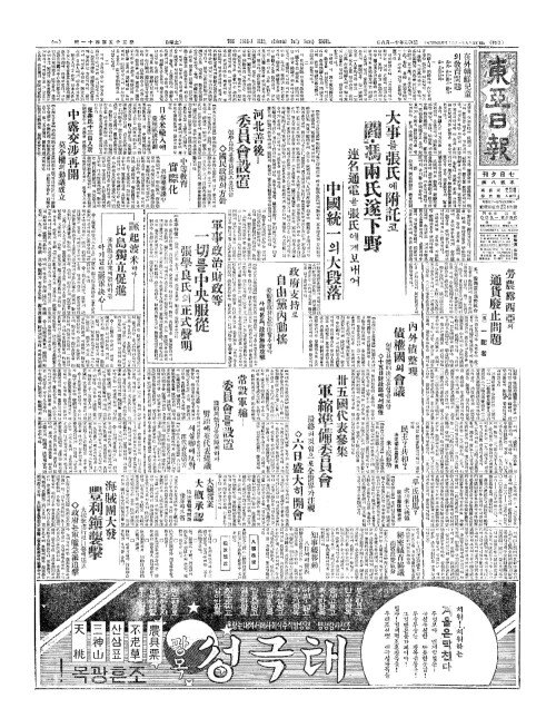 - 大事(대사)를張氏(장씨)에附託(부탁)코 閻(염)·馮兩氏遂下野(빙량씨수하야)