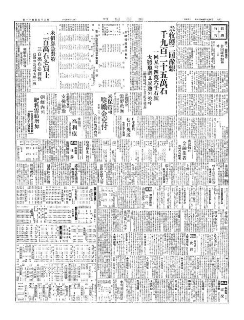 - 米收穫二回豫想(미수확이회예상) 千九百二十五萬石(천구백이십오만석)