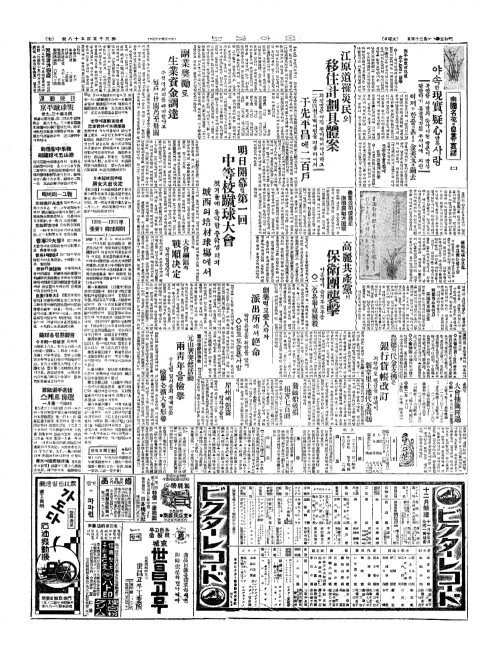- 光州(광주)에運動塲完成(운동장완성) 記念野球(기념야구)에木浦優勝(목포우승)